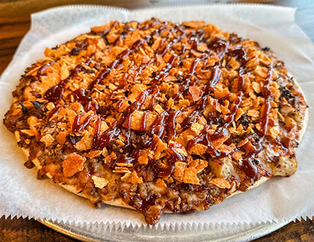 BBQ Base, Crumbled Sausage, Chicken, Bacon, BBQ Grippos Topped W/BBQ Sauce
