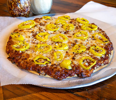 The Sloppy Joe comes with Crumbled Sausage, our Special Sauce, Banana Pepper Rings and Onions.